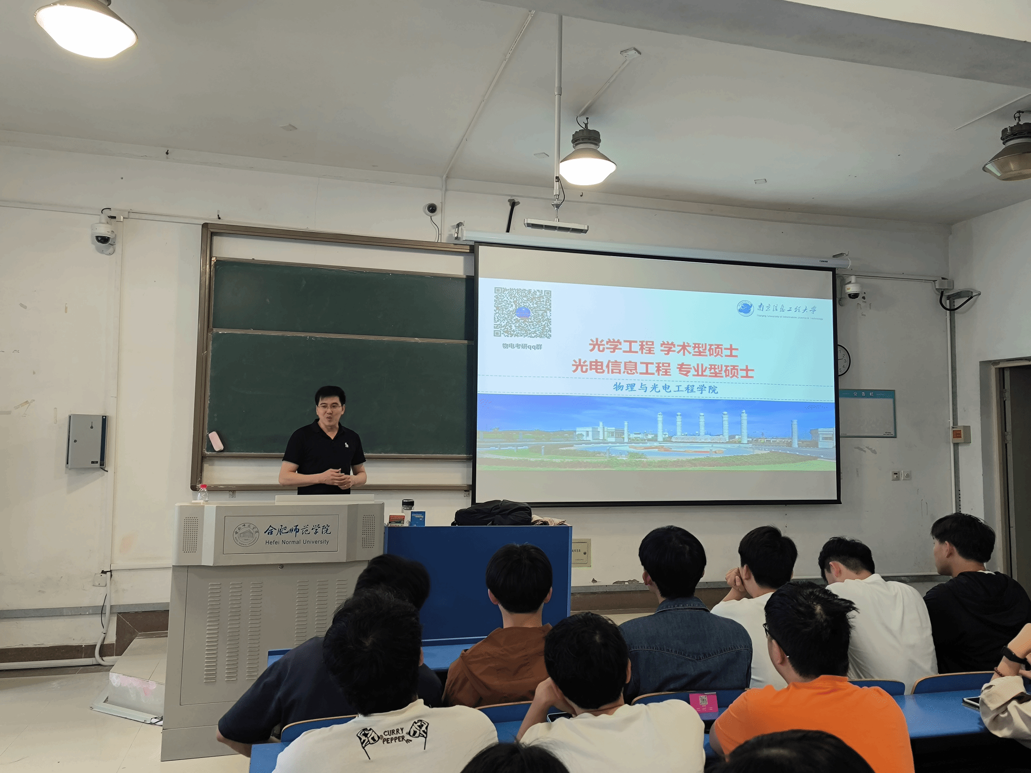 5月30日下午,太阳成集团122ccvip在逸夫楼A104举办研究生报考系列宣讲会,邀请南京信息工程大学物理与光电工程公司副经理赖敏教授为考研学子作现场宣讲。2021级光电信息科学与工程专业员工全体参加,宣讲会由副经理余龙宝主持。