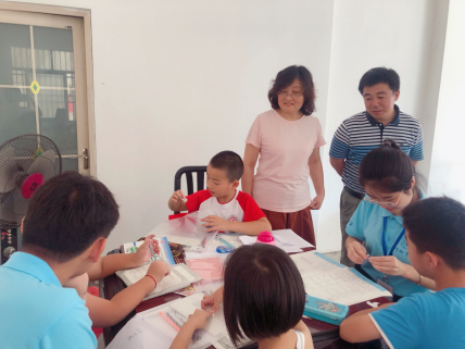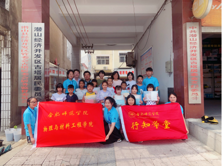 7月11号上午,公司党总支书记唐洁、副书记吴震,分团委负责人吴梦云,指导教师宗晓岚、辅导员韩翔一行五人冒着烈日,来到潜山市梅城镇古塔居委会,看望“再唱黄梅”主题行知学堂的“小先生”和留守儿童。