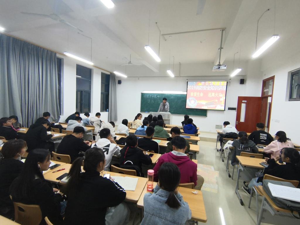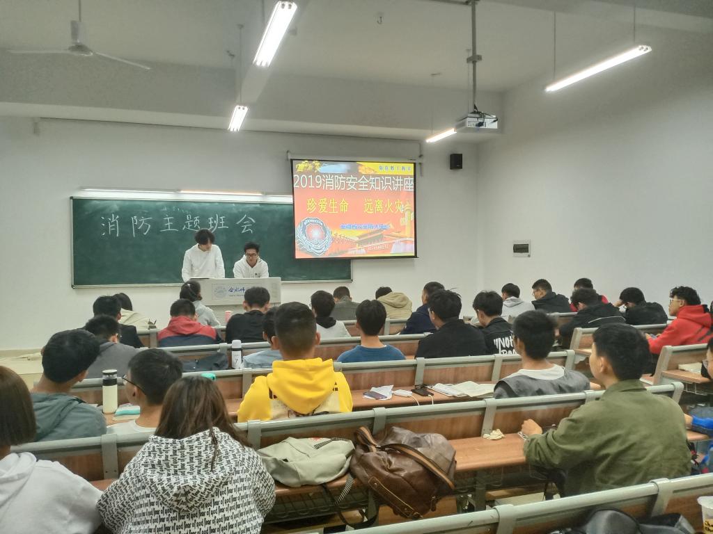 为迎接11月9日国家消防日,加强老员工消防安全意识,规范员工宿舍用电行为,全力打造安全校园,11月7日晚,太阳成集团122ccvip在滨湖新区博学楼举行“119消防安全”主题班会。会议由各班生活委员和安全委员共同主持,辅导员韩翔老师及2019级全体员工参加此次班会。