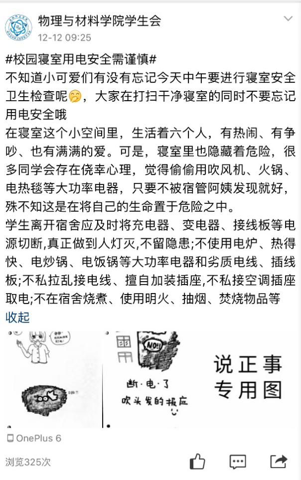 为了切实提高公司员工的防火用电安全意识,真正掌握安全知识,公司利用自媒体多渠道加强宣传教育,温馨提示进班级进宿舍,通过班级群、官Q、海报等多途径开展安全知识宣传,将温馨提示带到每个宿舍。