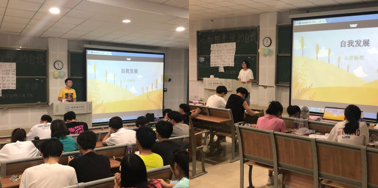 在发展自我单元,同学们以现场发言和作业报告的形式畅谈此次系列活动参与的真实感受和自我收获,坦然面对自己的优势与不足,分享自己的真实感受和心理差距。最后由专业老师依次进行点评并给予心理建设和完善自我的指导和建议。