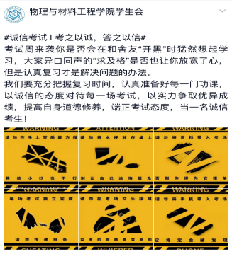 拓宽诚信教育平台,强化教育实效。公司创新工作形式,开展以诚信考试为主题的特色活动。利用微信公众号等新媒体形式,推出诚信教育主题宣传,设置用图文并茂的形式、更易于接受的语言,加深员工对“学以载道,诚信为本”的认知。
