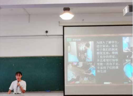 全院共有9支团队参加本次院内评比。各“行知学堂”“小先生”代表结合PPT、音频、视频等相关材料,从前期准备、教学内容、成果展示、社会影响等方面对各自“行知学堂”的暑期活动进行了比较全面的总结汇报。