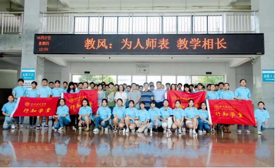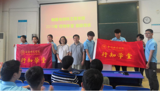 仪式最后,唐洁、吴震为“行知学堂”小先生代表授旗,宣布物材公司2019年“行知学堂”暑期社会实践活动正式启动。