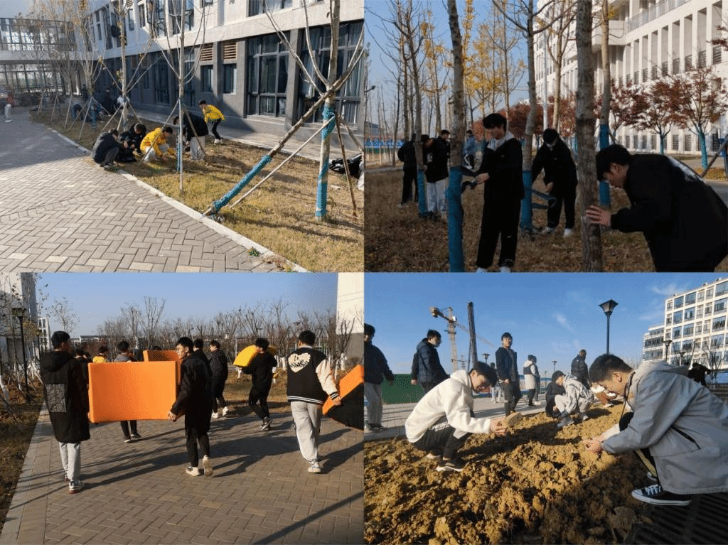 校园劳动方面,轮流对滨湖校区的操场、人行道、食堂、教学楼和宿舍楼周边区域进行包括清理落叶、修整树皮草皮、维护窨井盖、规整自行车辆等各类劳动,2020级部分员工还参与了铭传楼公共交流区桌椅沙发的搬移和组装。