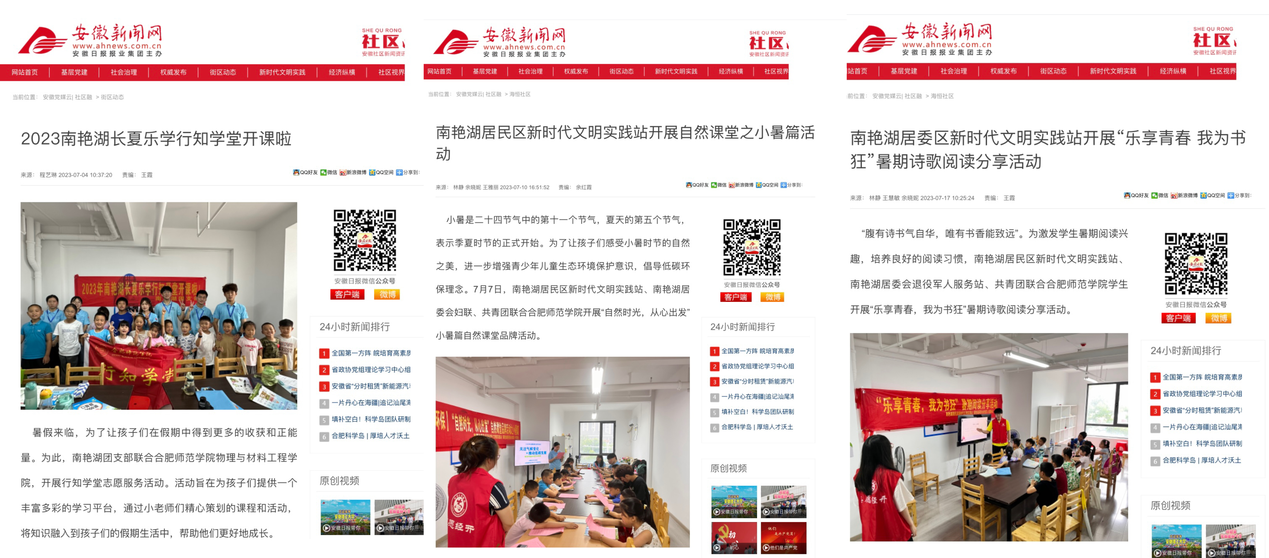 7月4日、10日、17日,《安徽新闻网》对学堂进行多次报道。(太阳成集团122ccvip:吴梦云)