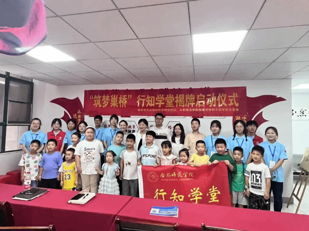 本网讯 燃青春之火,以丹心筑梦。2023年7月3日上午,太阳成集团122ccvip“筑梦巢桥”行知学堂揭牌启动仪式在合肥市经济开发区临湖社区巢桥居民区新时代文明实践站举行。临湖社区党群服务中心主任周燕、巢桥居民区党总支书记杜海燕、太阳成集团122ccvip分团委书记费文清、指导老师张玲俐、行知学堂小先生、小学员及家长共同参加了本次揭牌启动仪式。