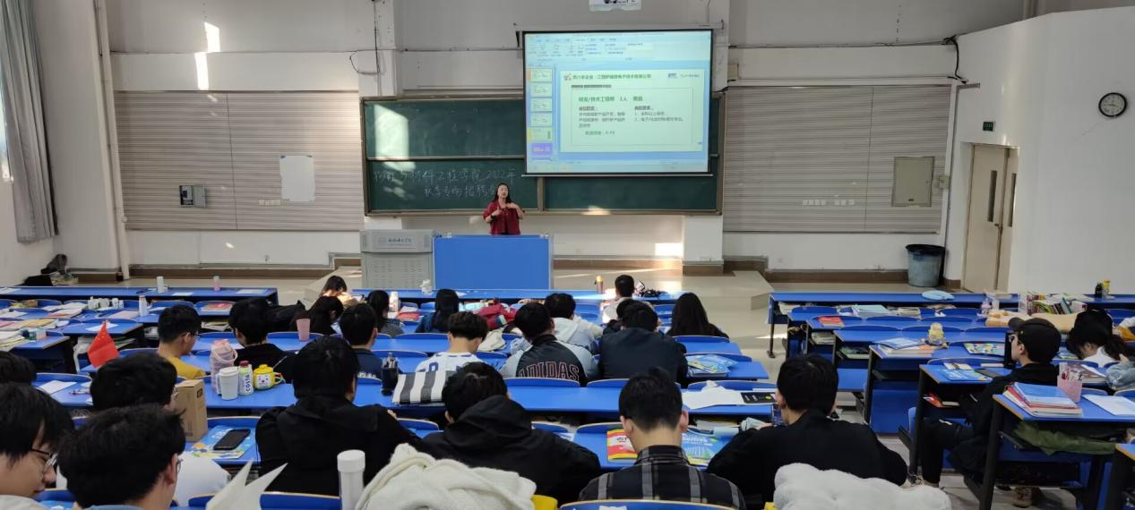 合肥晶澳太阳能科技有限公司人事经理许学铭通过视频和PPT向同学们展示了公司的企业文化、职业发展方向、人员需求以及选择该公司的理由,并现场解答了同学们的疑惑。