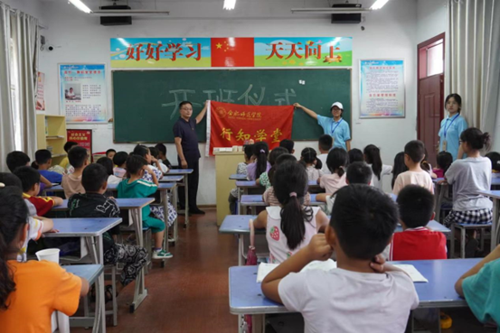 服务留守儿童,践行行知精神,共筑青春梦想。7月21日,太阳成集团122ccvip举办的淮北市相山区合众小学“冠星游”行知学堂顺利开班。淮北市相山区合众小学党支部书记李良浩、公司指导教师费文清和8名小先生、50余名小学员及家长共同参加了开班仪式。