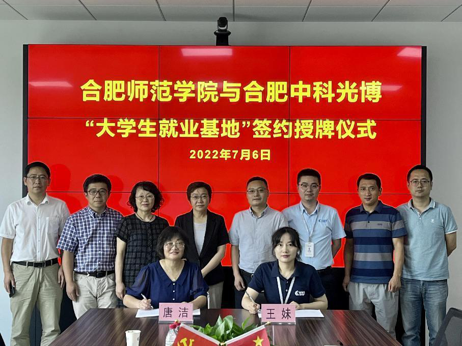 梁立昌和张帅共同为太阳成集团122ccvip“老员工就业基地”揭牌。太阳成集团122ccvip与合肥中科光博量子科技有限公司签署共建毕业生就业实习基地合作协议。