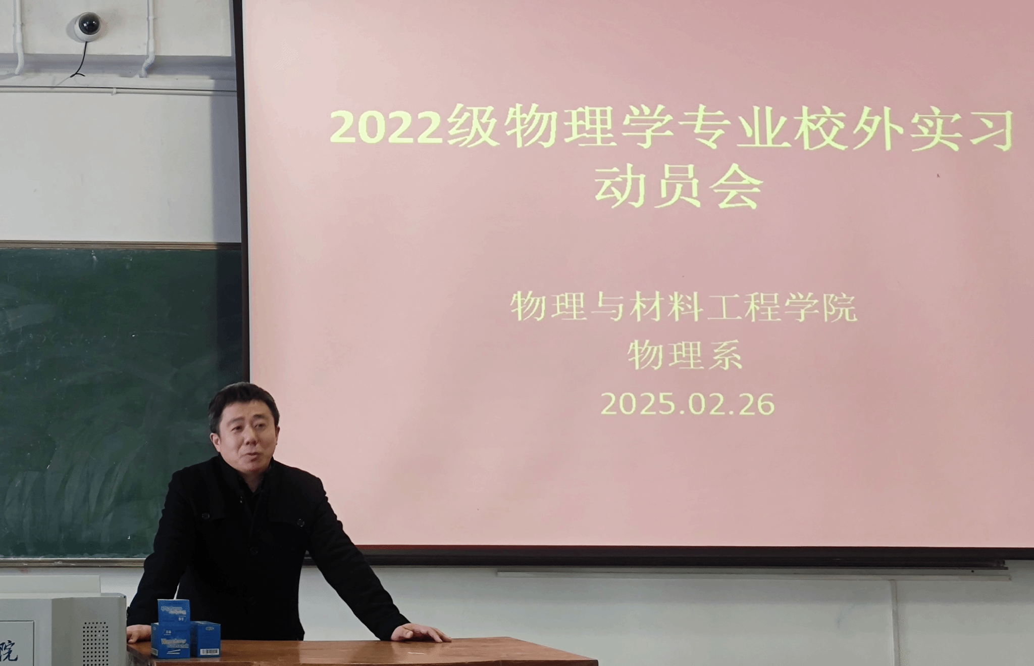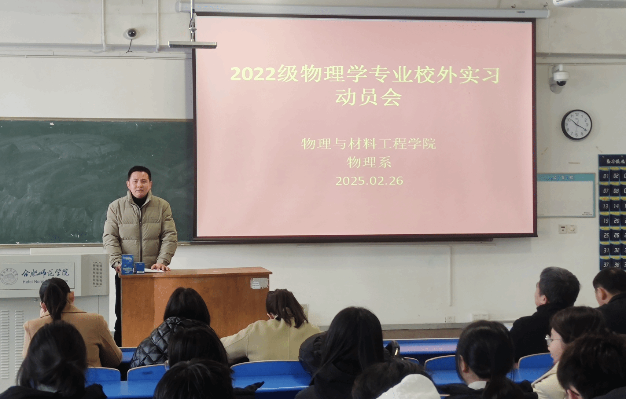 2月26日上午,太阳成集团122ccvip在逸夫楼A106召开了2022级物理学(师范)专业教育实习动员会。公司党委书记吴震、副经理余龙宝、物理系主任沈永才、全体实习指导老师、辅导员及2022级物理学(师范)专业同学参加了本次动员会。