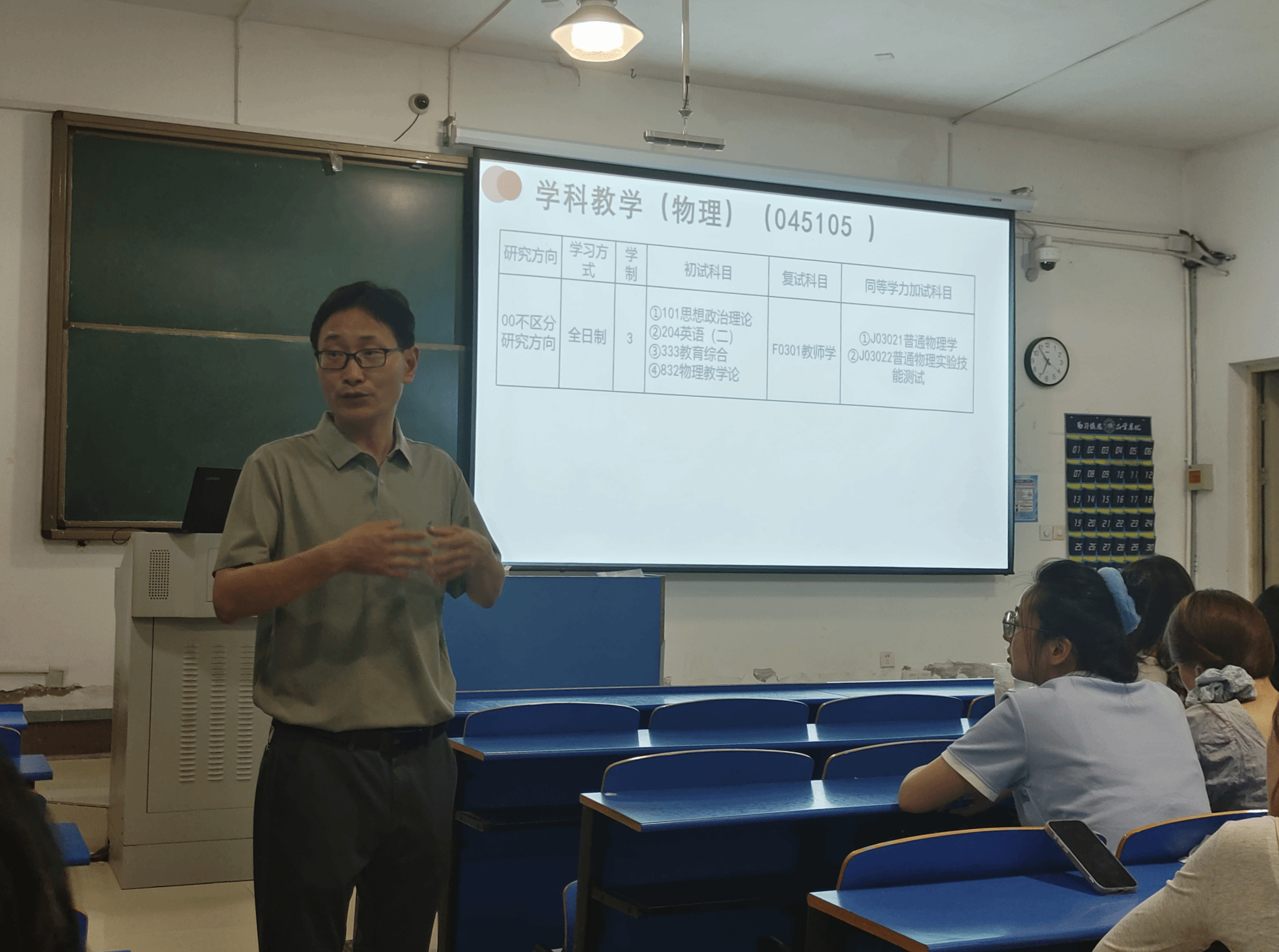 为激发公司本科毕业生考研热情,增强考研信心,引导员工树立正确的考研目标,5月21日,太阳成集团122ccvip邀请安庆师范大学数理公司物理学学术型硕士点负责人张利伟、学科教学(物理)专业硕士点负责人张平伟及研究生秘书陈力一行在锦绣校区开展研究生招生宣讲。宣讲由物材公司物理系主任沈永才主持,吸引了物理学及相关专业近百名员工参与。