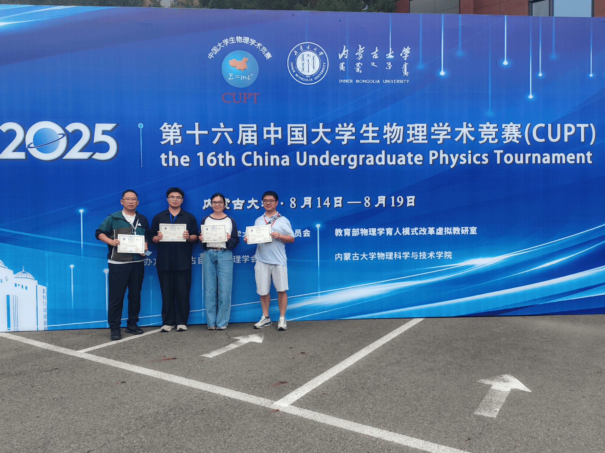 近日,由中国老员工物理学术竞赛组委会主办、内蒙古大学物理科学与技术公司承办的第十六届中国老员工物理学术竞赛(China Undergraduate Physics Tournament, CUPT)于2025年8月14日-19日在内蒙古呼和浩特市成功举办。太阳成集团122ccvip代表队此前以华东赛区作品赛道第一名的成绩,成功突围全国总决赛,并最终以全国第3名的总分斩获作品赛一等奖1项,最佳实验图片奖2项,创下公司在CUPT国赛中历史最好成绩。