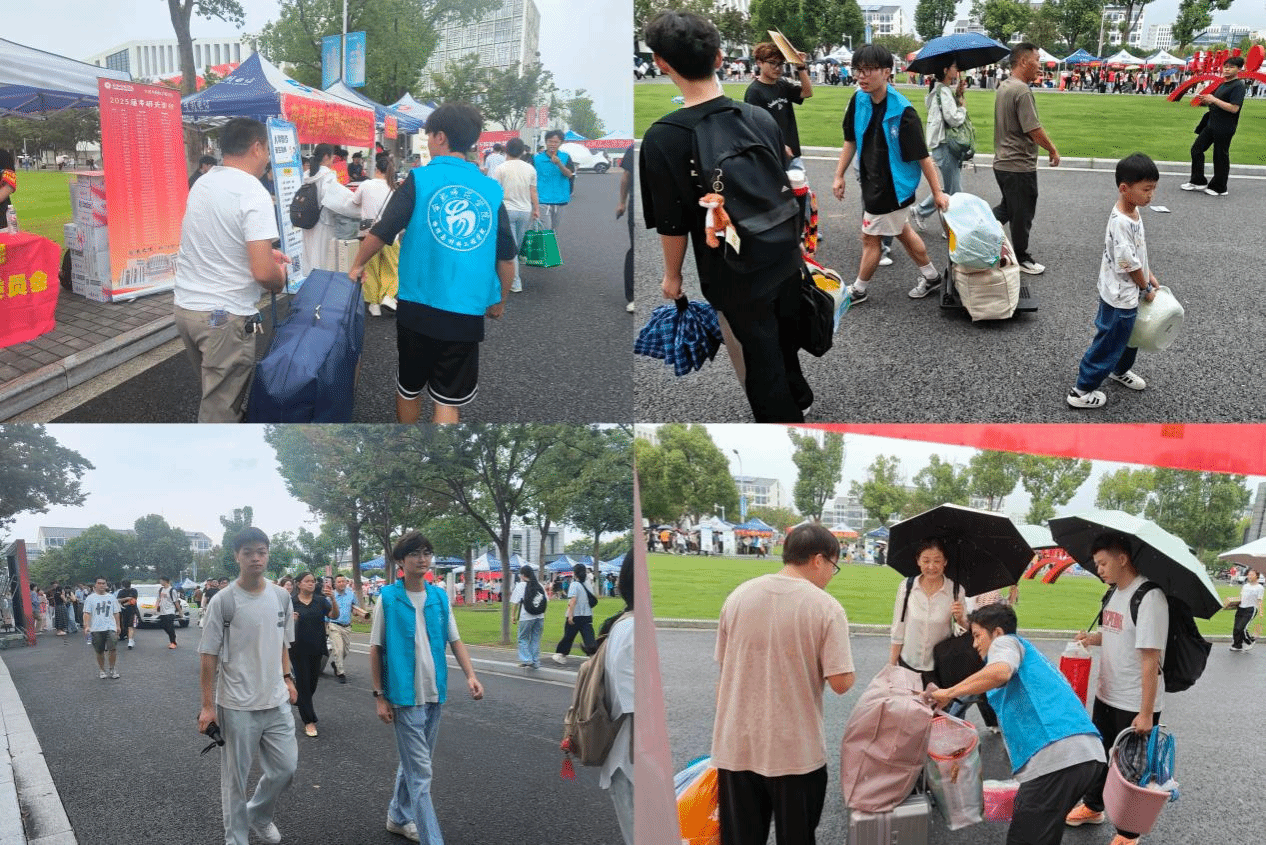 晨曦微露,迎新志愿者在校门口翘首以盼,身着统一标识,主动热情,搬运行李,积极引导,耐心解答,亲切的话语萦绕在新生耳边,忙碌的身影穿梭在校园各处。