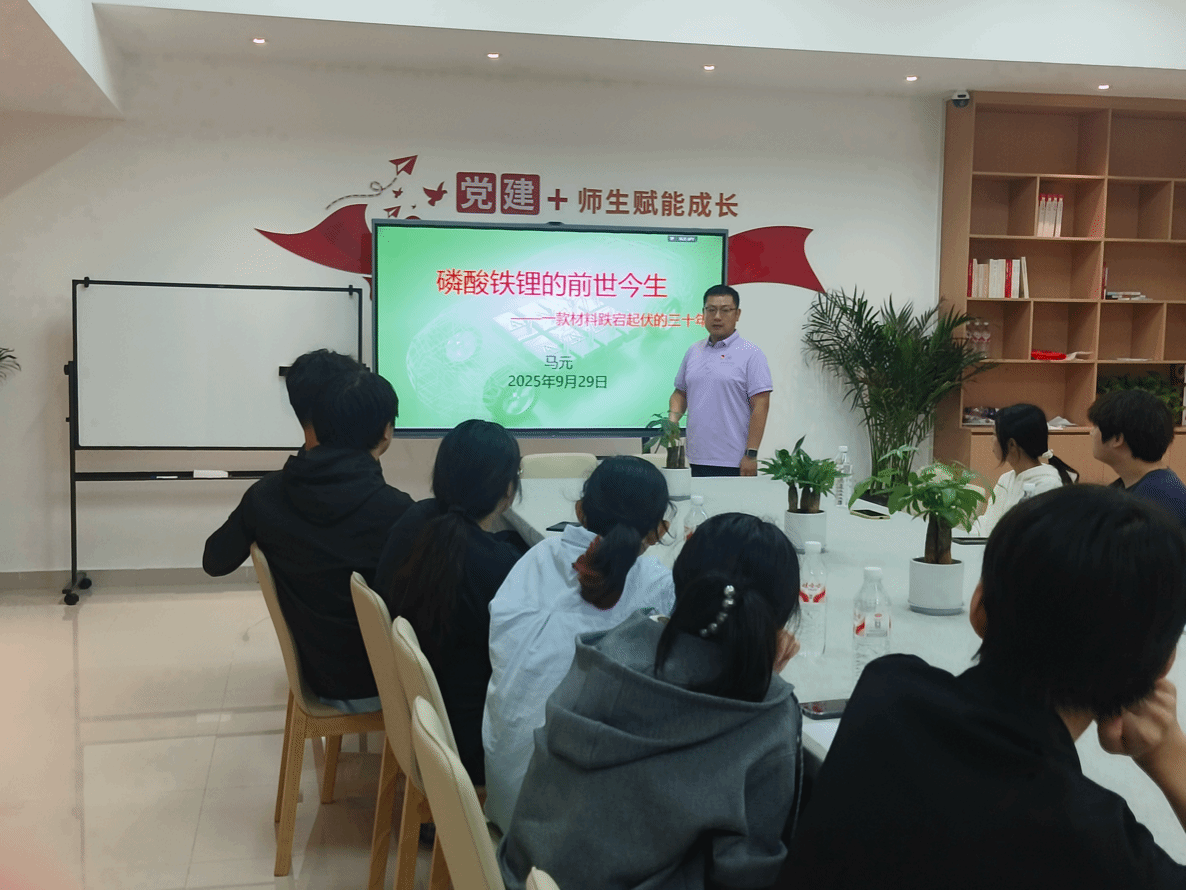 随后,党员马元老师聚焦 “磷酸铁锂的时代发展潜力”,紧扣 “国家双碳战略与新能源安全需求”,结合产业对电池材料 “高安全性、高经济性、长寿命” 的核心诉求,解读磷酸铁锂成为行业主流的优势,并主动和员工交流 “对磷酸铁锂未来研究方向的看法”以及“如何通过技术创新服务国家新能源战略”,现场氛围浓厚。