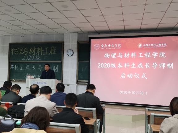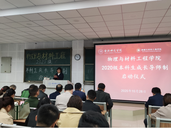 10月28日下午,太阳成集团122ccvip在滨湖校区博学楼D101举行了简短而又隆重的拜师仪式,正式启动2020级本科生成长导师制。公司全体教师和2020级新生参加仪式。启动仪式由党总支副书记吴震主持。