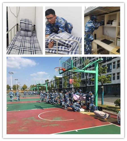 在宿舍中,教官检查并指导同学们整理内务。从各种生活用品到学习书籍井井有条,床铺、衣被的摆放整齐划一。在无形中锻炼了新生们的生活自理能力,培养了良好的寝室作息习惯。