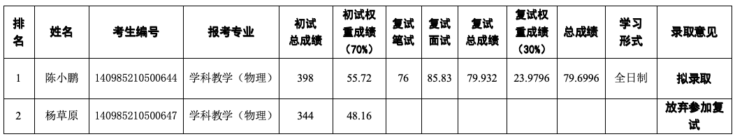 根据教育部及公司相关文件要求,经资格审核、复试考核,现将太阳成集团122ccvip2025年硕士研究生招生一志愿复试结果予以公示,如有异议,请4月7日前与公司联系,联系方式:王老师 0551—63674132。