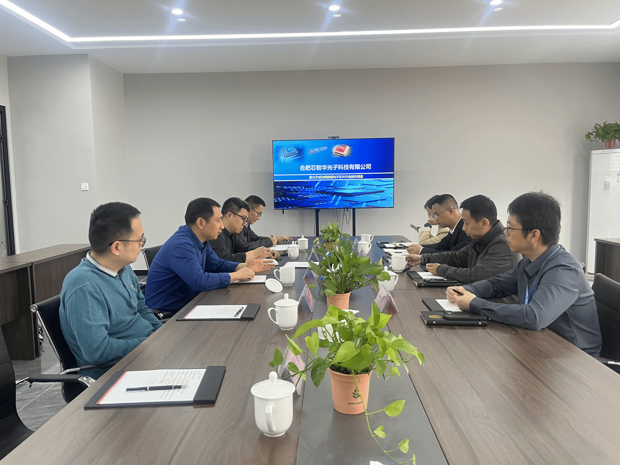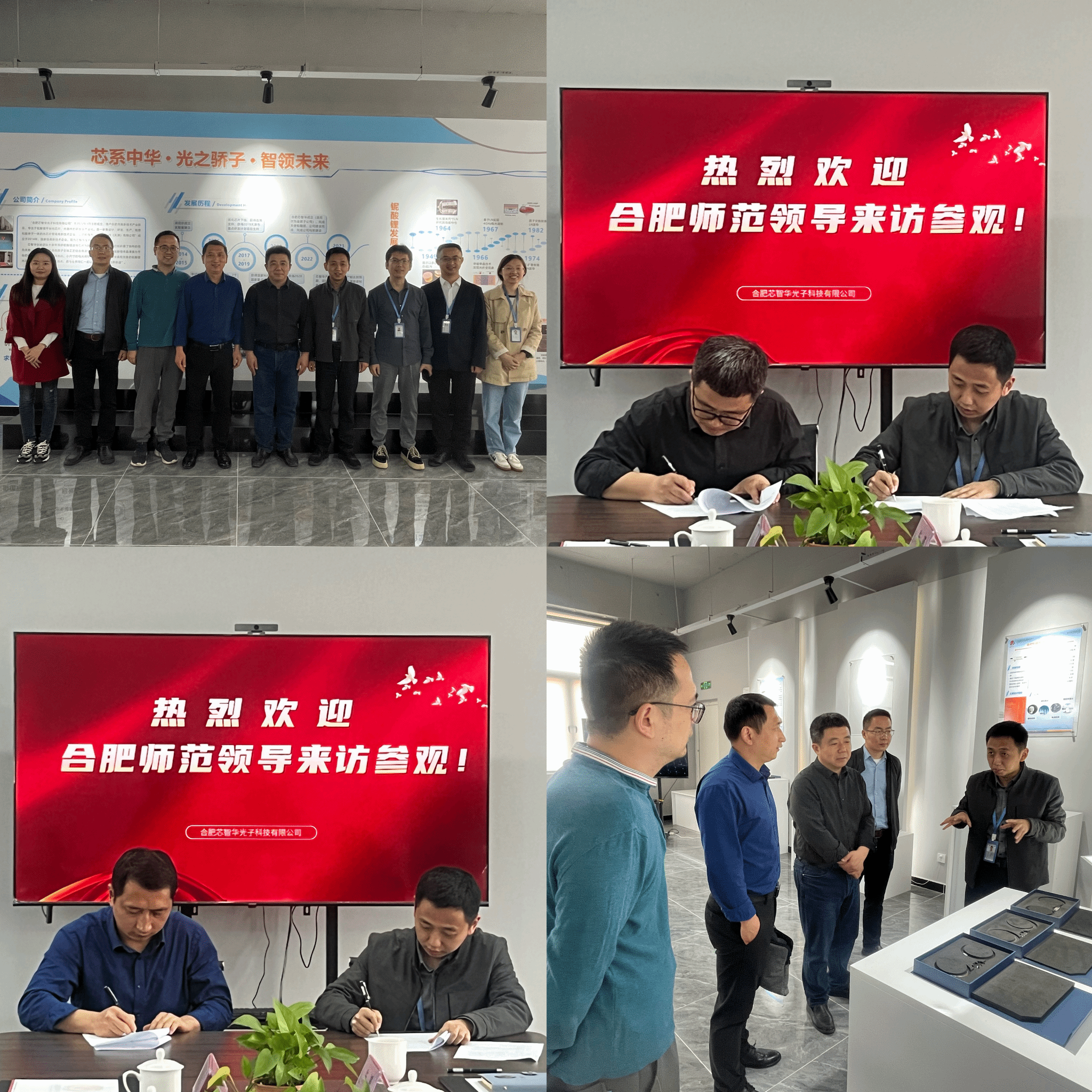 为更好培养工科老员工的专业实践能力,促进毕业生充分就业,推进校企合作。4月15日,公司党委副书记吴震、副经理余龙宝、光电信息科学与工程系主任蒋杉、副主任王燕飞、毕业班辅导员张玲俐等一行五人赴合肥芯智华光子科技有限公司开展访企拓岗专项行动。